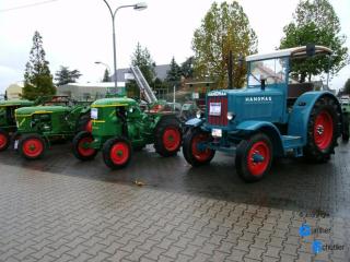 Wir kamen also nass und vom Straßenschmutz gezeichnet in Gimbsheim an..... das tat der guten Laune aber kein Abbruch. Wir erlebten einen schönen Tag bei gutem Essen mit interessanten Maschinen. Als besonderes Highlight war das Stromagregat von Jochen. Zuerst nur ein Kofferanhänger, aber dann öffnete er die Türen. Ein Rundgang durch den Anhänger war wegen der Enge nicht einfach, der Anhänger ist gut gefüllt mit einem kräftigen Diesel und einem Generator. Der Sound der laufenden Maschine ist schon etwas besonderes. So ging auch dieser Tag zu Ende und wir traten bei trockenem Wetter die Heimreise an. |