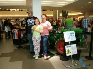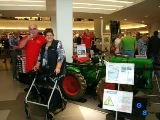 So kam auch die Idee wir brauchen einen Traktor der auch Heimatverbundenheit demonstriert. Auf der Suche nach diesem fanden die Leute von Möbel Martin dann auch unsere Homepage und fragten ob wir da was machen könnten. Da auch das Möbelhaus eine Planungssicherheit braucht war schnelles handeln gefragt und wir reisten noch am gleichen Tag zur Vorbesprechung nach Mainz. Bis dahin waren die Fragen zu klären auf was können wir in dieser Zeit verzichten, wir machten also gezielt praktikabele Vorschläge. Die Wahl viel auf den Holder A10, der wohl der erste Schlepper war der in unserem Raum weinbergstauglich war. Nach einigen Telefonaten kam dann der Tag an dem der Kleine mit den Kulleraugen verladen wurde um für 3 Wochen die Kunden zu erfreuen. Mit im Gepäck waren natürlich die Infotafel mit der Geschichte des Kleinen sowie eine Kopie des Verkaufsprospektes aus dieser Zeit. Auch sollte der Hinweis auf unsere IG nicht fehlen, dazu sollte das Gestell aus Faßdauben herhalten. Was die Profis dann daraus machen war uns zu diesem Zeitpunkt nicht klar, die wollen ja keinen Schlepper zeigen sondern ihre Waren verkaufen. Am frühen Nachmittag besuchte wir dann nochmals den Kleinen und sahen, was die Profis daraus machten. |