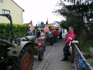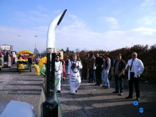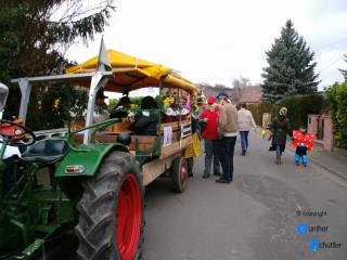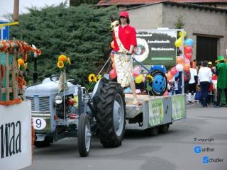 ...endlich ging es los. Im Schlepp wurde Emma in die Startaufstellung gezogen. Nach einigen netten Gesprächen ging es dann los. Leider verlangte Emma schon sehr früh nach dem Schleppfahrzeug, es gab Probleme mit dem Leerlaufsystem, das tat aber der Stimmung der Jungs keinen Abbruch. Unsere Damen genossen das Interesse an Ihrer Arbeit und waren voll dabei, Bonbons, Honig und Sonstiges wurde ausgeworfen. An dieser Stelle möchten wir uns bei der "Kleinen Bunten Kiste" in Guntersblum für das gestiftete Wurfmaterial bedanken. Zum Abschluß gab es noch ein nettes Beisammensein und so konnte der Tag dann ausklingen. Der Carneval-Verein Guntersblum e.V. begrüßte alle mitwirkende Gruppen zu Beginn des Zuges und stellte diese dann auch am Marktplatz mit netten Worten vor. Da macht es richtig Spaß dabei zu sein. Leider gibt es keine Bilder vom Zug selbst, wir sind nur eine kleine Gruppe, bei der der Webmaster Mitwirkender, Fotograf und Texter in Personalunion ist. Somit haben wir keinen Fotograf auf der Strecke und können nur Bilder aus der Sicht der Mitwirkenden liefern. Bei großen Vereinen ist das anders..... aber wir haben nicht weniger Spaß dabei. |