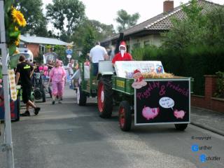 Auch gibt es alljährlich einen Festzug, der sich sehen lassen kann. Da wird viel organisiert und improvisiert und damit auch das Ziel eines farbenprächtigen Lindwurms erreicht.
