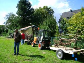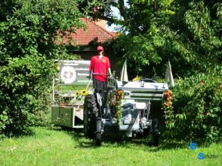 Die örtlichen Vereine und Gruppen waren aufgerufen sich zu beteiligen. So stellten wir eine Auswahl an Traktoren und Geräten zusammen, die diese Zeit noch aktiv mitgestalteten. Viele Geräte waren den Jüngeren schon nicht mehr bekannt. An zwei Stellen wurden wir Teilnehmer begrüßt, die Wagen und Zugmaschinen kommentiert, auch die Fußgruppen wurden entsprechend gewürdigt. Es waren echt volle Straßen, aber der Kellerweg hat dann doch noch alles was wir bislang bei Festzügen erlebten in den Schatten gestellt. Es war eine echte Tuchfühlung mit den Gästen aus Nah und Fern, nette Kontakte und interessierte Fragen sind schon ein toller Lohn für die Arbeit die wir in unsere Schätzchen investiert haben. Aber damit war es nicht genug, anerkennende Worte setzen dem Ganzen noch die Krone auf. Am Julianenbrunnen war dann auch noch ein Team des SWR, so konnten wir dann auch noch zwei unserer Traktoren im Fernsehen sehen. Die Freiwillige Feuerwehr war die ordnende Kraft des Zuges und leistete insbesondere an der kurzen Steilstrecke gute Arbeit zur Sicherheit der Besucher und auch der Teilnehmer. Zum Abschluß stellten wir unsere Fahrzeuge auf dem Gelände von Hartmut und Regina ab und starteten zu einem gemütlichen Abschluß in den Kellerweg. Bei gutem Wein und den dazugehörenden Speisen liesen wir den Tag ausklingen. Als Schreiberling der Homepage darf ich sicher noch meinen Emotionen freien Lauf lassen, es war ein tolles Gefühl bei dieser Veranstaltung eine so tolle Truppe wie die Aktiven der Historischen Landtechnik Rheinhessen anführen zu dürfen. Wer das Kellerwegfest (Hauptlese) verpasst hat, hat am 29. und 30. August nochmals die Gelegenheit das einmalige Flair des Kellerwegs zu genießen. Und natürlich gibt es auch im nächsten Jahr keine Wiederholung sondern ein neues Fest mit neuen Ideen im historischen Kellerweg. |