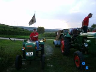 Es ging ganz langsam durch die Dorfstraßen, viele Erinnerungen wurden bei den Zuschauern geweckt. Als Fahrer hat man ja andere Aufmerksamkeiten aber Kommentare wie "so hatte ich auch einen" oder viele befassten sich auch mit den Wagen. Dies ist das Schönste was man bei einem Festzug erleben kann. Auch die Presse hat sich wieder mit uns befasst, schade Hartmut, Dein Hund Tina wurde namentlich erwäht, Du nur als Herrchen. Zum Abschluß stoppten wir nochmals nach Mölsheim. Bei einem herrlichen Blick über Wachenheim stärkten wir uns für die Heimfahrt. |