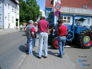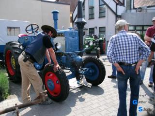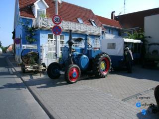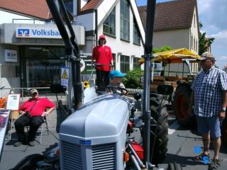 .......aber viele Hände packten an. Es sollte ein herrlicher Tag mit vielen netten Kontakten werden, viele Erinnerungen wurden ausgetauscht. Kinder nahmen die Gelegenheit wahr um auf unseren Traktoren Platz zu nehmen, da kamen bei uns natürlich auch Erinnerungen hoch..... ...... zu unserer Kindheit gab es überall landwirtschaftliche Ausstellungen und wir mussten ja auch mal auf jeden Schlepper aufsitzen. Dies wollen wir keinem vorenthalten, wir erwarten lediglich ein vernünftiges Verhalten ohne Zerstörungen, genau das können wir unseren jungen Besuchern bescheinigen...... ...... eine echte Freude. Alles hat einmal ein Ende, so packten wir unser Material wieder zusammen und sahen den Tag als beendet an....... ..... ja da machte uns dann die Fähre noch eine Freude mit einer kleinen Showeinlage, recht herzlichen Dank an die Fährleute. Auf der Rückfahrt sahen wir auch noch einige winkende Menschen, das ist ein Ansporn für die Zukunft. In unserer Mitte konnten wir Frank und Andreas begrüßen, wahrscheinlich sehen wir uns jetzt öfter. Es war eine Freude mit Euch. Wir danken Marco für die reibungslose Organisation. |