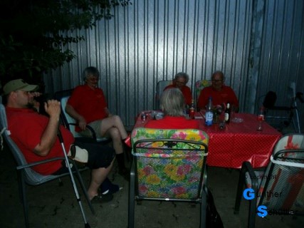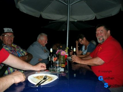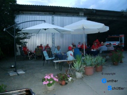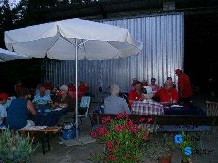 Getränke gab es reichlich und an Gesprächsthemen war auch kein Mangel. Ja es ging sogar soweit, dass Gunther das Fotografieren vergass und dann zu später Stunde noch einige Aufnahmen machte. Ja auch die Natur kam nicht zu kurz, Fledermäuse flogen zur späten Stunde durch den nächtlichen Himmel. Keine Frage es war ein schöner Abend. Unser Dank gilt Gutrun und Georg für die schönen Stunden auf ihrem Hof und dem Hofhund Charly für die Bewachung. |