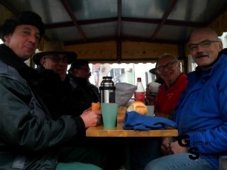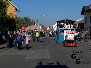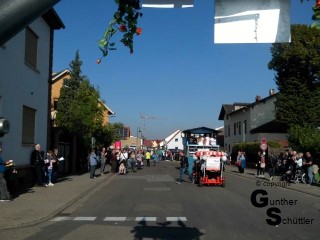 Nach einiger Zeit tanzten Wassertropfen auf der Motorhaube, ja kann man der Wettervorhersage nicht mehr trauen? So war es am Treffpunkt in Osthofen und auch noch in Monsheim. Wir hofften auf gute Stimmung im Festzug, aber wird die bei dem Wetter aufkommen? In der Aufstellung gab es erste gute Kontakte und wir stärkten uns mit Weck und Worscht. Kurz vor Beginn des Zuges kam die Sonne zum Vorschein und keiner zweifelte mehr an einem wunderschönen Tag. Erstmals waren wir am Ende des Zuges aufgestellt, da kann ich nur sagen, das ist nicht der schlechteste Platz. Wir erlebten eine tolle Stimmung und viel Interesse an unseren Maschinen und unserer Arbeit, so kommen wir gerne wieder. Am Abend fanden wir dann schon Bilder in der Galerie des Nibelungen Kuriers und später auch Filme auf youtube. Ein herrlicher Tag fand seinen Abschluß in Maries Scheune in Alsheim. |