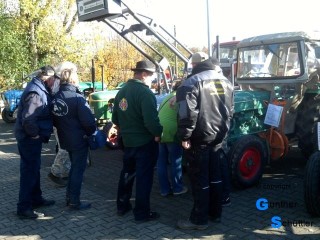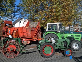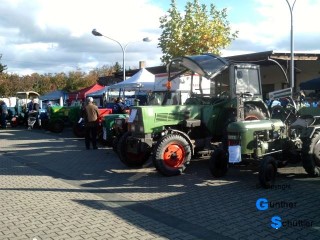 Da herrscht buntes Treiben im Ort, die Geschäfte haben geöffnet, ja es wird auch richtig gefeiert. Fast am Ende des Ortes gibt es den Landhandel Rehn, da ist durch den Inhaber der Bezug zu den Oldtimer Schleppern schon gegeben, er ist Mitglied bei den Bulldogfreunden Gimbsheim. Zusammen mit den Bulldogfreunden hat sich die ursprünglich überschaubare Ausstellung zu einem festen Bestandteil der Jahresplanung vieler Vereine entwickelt. Der große Parkplatz platzt aus allen Nähten.
