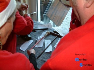 Es war auch anzunehmen, dass in der heutigen Gesellschaft jeder sein Wissen verteidigt und nichts davon preisgibt. Die Realität sah aber anders aus, es wurde rege diskutiert und ein fast einstimmiges Ergebnis erreicht. So war dann auch eine Glücksfee notwendig um die Preisträger zu ermitteln. Die Wahl fiel auf Helga...... Der erste gezogene Preis ging dann auch an Helga, ein schöner Lohn für ihre Mühe..... Sie konnte aus den ganzen Preisen ihren Preis auswählen..... .....natürlich gab es auch vorher die Warnung, es könnte auch ein Päckchen leer sein. Aber das war diesmal nicht der Fall. Ein Hinweis in eigner Sache: Dieses Ratespiel ist noch für andere Veranstaltungen vorgesehen, so werden wir diese Funde zu gegebener Zeit in der Rubrik Geräte vorstellen. Nikolausfahrt - 5 - Jahre Historische Landtechnik Rheinhessen Nikolausfahrt Die Fahrt |