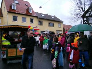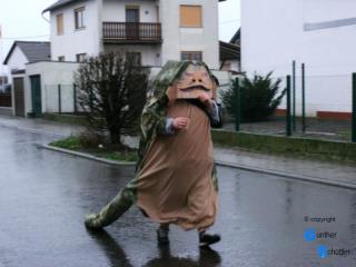 Als dann der heftige Regen einsetzte und der Wind immer stärker wurde waren auch fast keine Zuschauer mehr an der Strecke. In so einer Situation den Zugweg zu verkürzen ist nicht einfach, wir konnten also sehen was die Großen vorlegten war das Gebot der Wettersituation. Aber Alles hat einmal ein Ende, so landeten wir bei Gudrun und Georg zu einem tollen Abschluß. Wir danken den Beiden für den schönen Abend...... Für das nächste Jahr wünschen wir uns und den Fastnachtern am Straßenrand ein super Wetter als Ausgleich. |