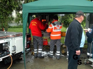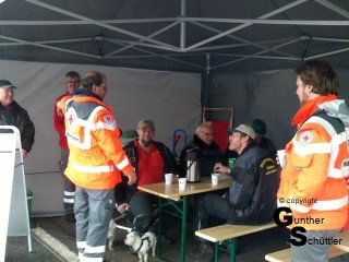 Also Hilfe für die Helfer in allen Notlagen. Auf sonniges Wetter warteten wir den ganzen Tag vergebens, aber es gab ja Zelte und Planwagen. Die Verpflegung wurde gesponsort und vom DRK bereitgestellt. Da das Sponsoring auf 2 Geburtstage zurückzuführen war gab es natürlich auch Geschenke. So wurde noch ein wunderbarer Tag aus dem Ganzen, bis die abgesprochene Rückreise anstand. Da gab es dann massive Probleme. Ob die mit dem Fest und seinen (Getränke) Ständen zusammenhingen kann hier nicht beantwortet werden. Die letzten reisten dann nach dem Feuerwerk ab. Es gab eine ordentliche Portion Regen was aber der guten Laune kein Abbruch tat. |