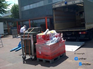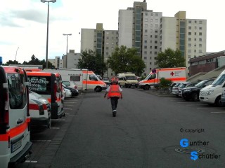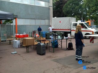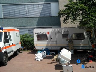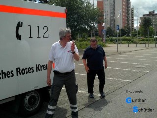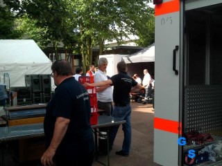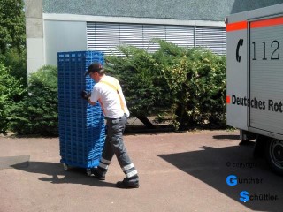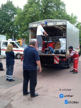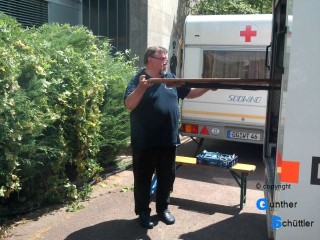 Wasser Strom und Abwasser..... .... ja eben alles was man so braucht. Erst ging das alles sehr schleppend, wir beiden Hiwi's kannten weder die Möglichkeiten noch den richtigen Bedarf. Dies sollte sich jedoch über den Tag ändern. Am späten Nachmittag stand dann das Bassislager und wir waren reif für unseren Stammtisch. Herbert half auch noch beim Essen ausfahren und verteilen. Am letzten Tag ging der Abbau dann schon viel routinierter vonstatten, es musste alles wieder an seinen angestammten Platz zurück. Uns bleibt ein angenehmer Rückblick, viele nette Menschen die für andere da sind, ja das DRK kann sich sehen lassen. |