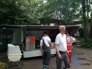 zu Gesicht bekommen sind die Leute von der EKV (Einsatz Kräfte Verpflegung). Sie versorgen die Einsatzkräfte bei Unglücks und