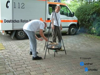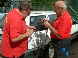 Als Programm waren 3 Aufgaben pro Gruppe vereinbart. Nach dem Aufbau und der Begrüßung starteten wir mit einem gemütlichen Grillen, Essen hält ja bekanntlich Leib und Seele zusammen. Essen und Trinken war von der DRK Gruppe organisiert. Danach hatte sich dann auch der kurze Regen verzogen und die Aufgaben in der freien Natur konnten beginnen. Die Freunde vom DRK fuhren Schlepper und das Spaßmobil "Wilde Emma", dabei wurden sie jeweils von einem unserer Mitglieder unterstützt. Jetzt konnte es kommen wie es wollte, alle anderen Aufgaben waren für die Halle vorgesehen. Aus zeitlichen Gründen wurden die Aufgaben, die vom DRK vorgesehen waren, gekürzt und sollten aber nachgeholt werden. auch fachliches lies sich nicht vermeiden, so wurde auch der angebrannte Kabelbaum eines Mähdreschers untersucht. Aufgaben von der Historischen Landtechnik Rheinhessen Aufgaben von der DRK EKV Spassverlosung |