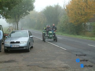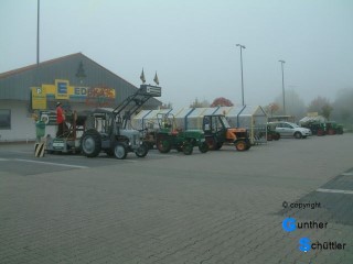 Das ist die Zeit des Bockenheimer Winzerfestes, an dessen Festzug wir uns schon seit Jahren beteiligen. In diesem Jahr versprach die Wettervorhersage einen sehr warmen Tag. Wir starteten bei Nebel zur Fahrt nach Bockenheim und hofften auf Sonnenschein. An den üblichen Treffpunkten war keine Besserung zu erkennen. Letzte Station vor Bockenheim war der EDEKA Parkplatz in Monsheim, auch konnten wir an der benachbarten Tankstelle nochmals Treibstoff fassen. Die Hoffnung auf Sonnenschein lag noch in der Luft, das hatten wir schon oft erlebt, dass sich kurz vor dem Ziel der Nebel auflöste und der Ort im Sonnenschein vor uns lag. Diese Jahr weit gefehlt.