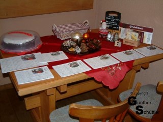 An einer schön dekorierten Tafel nahmen wir Platz, Helmut begrüßte alle Mitglieder und Gäste. Ein Gewinnspiel und die neuen Kalender