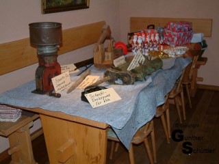Helmut stellte einige Exponate aus seinem Fundus zur Verfügung, mit erstaunen nahm man dann zur Kenntnis, dass er auch noch Beschriftungen anbrachte um welche Teile es sich handelt. Ja das kann einfach werden..... oder auch nicht. Die Beschriftungen wurden ergänzt mit Zahlen, hm was soll den das. Ja liebe Kollegen ihr habt euch mit der Geschichte der Hlt-Rheinhessen befasst, mit Spielkarten gezockt, Teile geraten und jetzt müsst Ihr mit ALLEM rechnen. Dazu gab es ein Blatt mit der Aufgabe, einer Detailaufname der Ausstellungsstücke musste das Teil zugeordnet werden und die Zahl notiert. Der vorgegeben Rechenweg führte zum Datum der Nikolausfahrt. Es waren viele Aufgaben richtig gelöst und die Gewinner wurden per Losentscheid ermittelt. Was nicht im Programm stand war dann der Auftritt von Sieglinde, durch ein Fragespiel verteilte sie Lose für eine Scherzverlosung. Diese Scherzverlosung kam gut an. Zu guter letzt gab es noch Kaffee und Kuchen. Helmut bedankte sich noch bei allen Mitwirkenden für ihren Einsatz und unseren Damen für die guten Kuchen. |