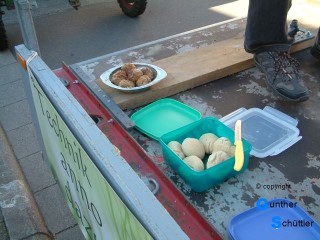 Es war eine ungewöhnlich schnelle Fahrt, also gab es eine lange Wartezeit, die wir uns mit Gertis Frikadellen verkürzten.