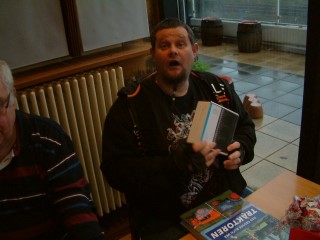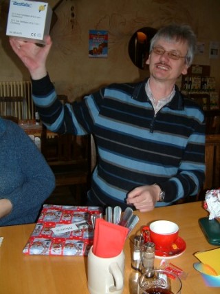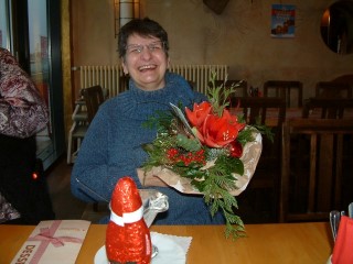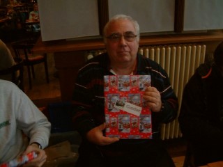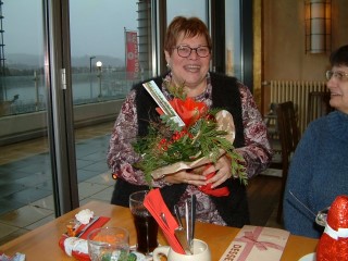 Daß dies einfacher war als ursprünglich angenommen wurde auch klar erkannt. Ja es war eher die Biergartengarnitur für Bier und Erbseneintopf.... ....Gerste und Erbsen ergeben natürlich kein Weizenmehl. Die Gewinner erfreuten sich an den Preisen und es ging in die letzte Runde, der Dank an alle Mitglieder für die geleistete Arbeit und den Zusammenhalt im letzten Jahr. Für die Damen gab es weihnachtliche Blumensträuße und die Herren Bücher. Gerti und Dierter konnten aus gesundheitlichen Gründen bzw. kommunaler Verantwortung zwar nicht dabei sein aber in Gedanken waren sie mitten unter uns. An dieser Stelle noch die besten Genesungswünsche an Gerti und Dieter wünschen wir einen ebenso schönen Tag in Erfüllung seiner Aufgaben. Bei der Rückfahrt dämmerte es bereits, von den Fluten des Rheins war nicht mehr viel zu sehen. Aber die Lichter der Malerischen Städte waren eine Augenweide. Und ein ganz persölichen Dank an Anreas für den kleinen Ferguson TEA