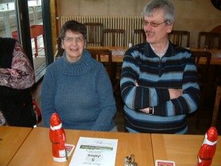 Hartmut verteilte die Nikoläuse auf dem Tisch. Nach der Begrüßung nahmen Doris und Marco ihre Urkunden für die 5-jährige Zugehörigkeit
