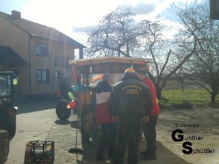 viele Zuschauer und Helau bis zum Abwinken. Am Ende des Zuges noch ein letztes Helau und dann zum Abschluß zu Gudrun und Georg zum Abschluß
