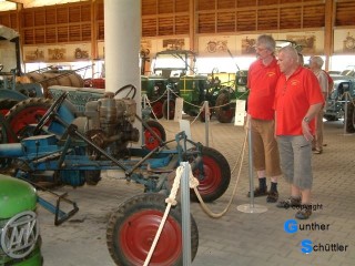 Da in der Nähe bei den Gastwirtschaften alles belegt war fuhren wir zum Mittagessen zu den Ratsstuben in Leinfelden-Echterdingen. Nach einer ausgiebigen Mittagspause ging es weiter zum Deutschen Landwirtschaftsmuseum. Mal sehen was es da in max 1,5 Stunden zu sehen gibt. Unser Museumsführer Herr Miller zeigte uns Sinn, Zweck und Geschichte des Museums sowie der Universität Hohenheim auf. Danach gab es eine Führung durch die Hallen des Museums mit fachkundigen und praxisbezogenen Erklärungen. Die vielen Exponate konnte er natürlich nicht alle einzel vorstellen, aber es war ein gelungener kurzweiliger und informativer Streifzug durch die Geschichte der Deutschen Landwirtschaft. Wir bedanken uns ausdrücklich bei Herrn Miller für diesen schönen Tag. Ja es gibt zwei Standorte im Abstand von ca 600m, leider war es uns zeitlich nicht mehr vergönnt den 2. Standort zu besuchen. Von den Eindrücken und der Informationsfülle waren wir jedoch geschafft. Nach der Rückfahrt ließen wir den Tag in Rheindürkheim in der Rheinperle ausklingen. und wie immer Nach der Fahrt ist vor der Fahrt Vielleicht ist ja dann der zweite Standort unser Ziel..... |