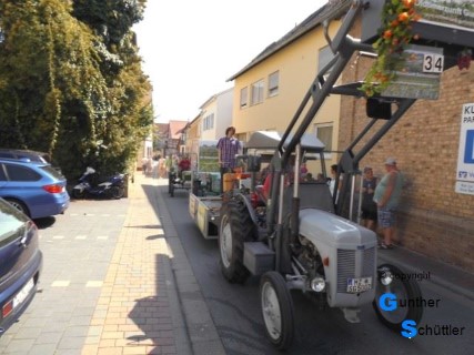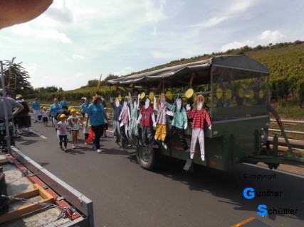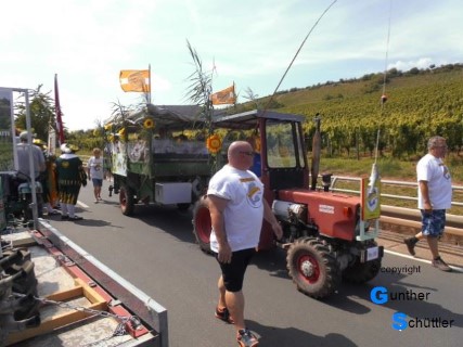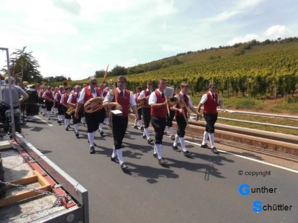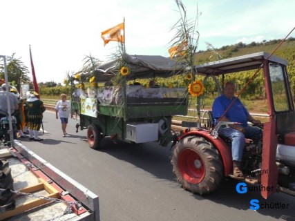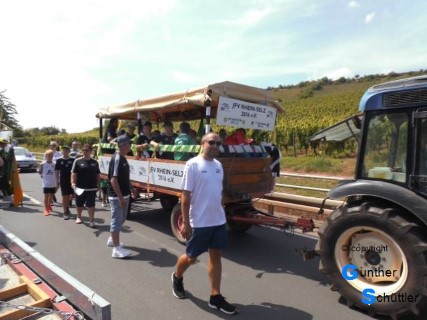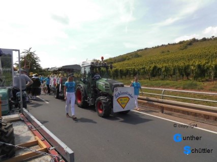 Jedoch gibt es ganz Besondere, die einfach Spaß machen und damit auch den Aufwand belohnen. Dazu gehört dann auch der Festzug zum Niersteiner Winzerfest, der nur alle 5 Jahre stattfindet oder zu besonderen Anlässen. In diesem Jahr war es ein Festzug im regulären Turnus. Die Aufstellung zeigte schon die endlose Länge des Zuges aus Fußgruppen, Wagen und natürlich Musikkapellen.
