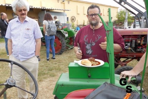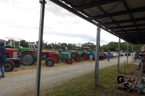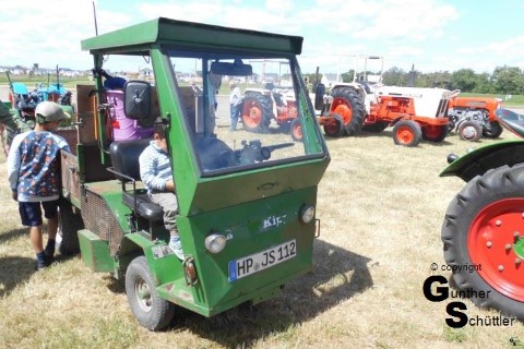 Nebenstrecke über Alsheim, Mettenheim, Osthofen und Wo-Herrnsheim zur Rheinbrücke in der Niebelungenstadt Worms. Auf der Nebenstrecke war es eine herrliche Fahrt, die Bundesstraße war da naturgemäß etwas anstrengender. Die Führung hatte Chris übernommen und erfüllte seine Aufgabe mit Bravour. Nach einer etwa 2-stündigen Fahrt erreichten wir den Boxheimerhof. Hier warteten schon Marco und Andreas, ja der VW Golf ist eben schneller. Da ging es bereits hoch her, der großzügige Platz reichte jedoch um Normag, Holder, Pony und Ferguson abzustellen. Es gab viele Begegnungen mit alten Bekannten aus der Szene, die wir leider lange nicht gesehen hatten. Neue Kontakte wurden bei fachlichen Gesprächen geknüpft, also ein gelungener Tag. Für die Rückfahrt wählten wir gleiche Formation und gleiche Strecke. Ein wunderschöner Tag ging zu Ende als alle Fahrzeuge wider in der Halle eingeparkt waren