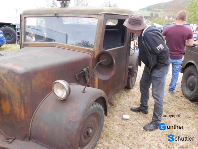 Kirchheimbolanden führte zu einer leichten Verzögerung, ja da war auch der halbe Weg geschafft und eine Pause gerechtfertigt. Letztendlich erreichten wir über Marnheim und die Orte an der Kaiserstraße bis es in Langmeil dann nach Münchweiler abzweigte. Inzwischen sah man dann auch andere Oldtimerfreunde und die Vorfreude auf das Treffen stieg. | ||||