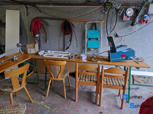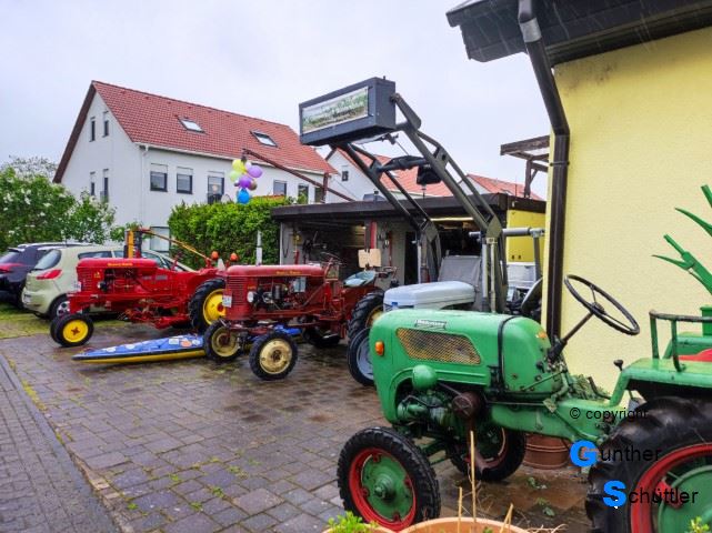 mehr benötigt wird kann auf dem eigenen Gelände angeboten werden, öffentlicher Verkehrsraum darf dazu nicht genutzt werden. OK, daraus wollten wir was machen. Schnell waren Gegenstände gefunden die wir zum Verkauf anbieten konnten. Wir wollten auch noch mit einer kleinen Ausstellung von Oldtimer-Schleppern dem Ganzen noch etwas mehr an Anziehung geben. | ||||