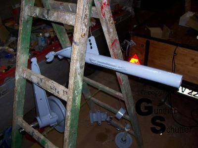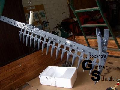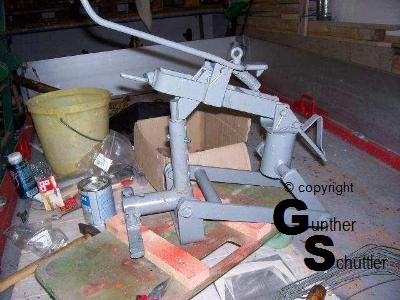 Große Probleme wurden duch planvolles Vorgehen schnell kleiner und der Antrieb für die Arbeit kam von selbst. Recht schnell waren die vorhandenen Teile aufgearbeitet, und fehlende (Klein) Teile ersetzt. Nur der Anbaubock machte mir Probleme. Von meinem Hakofreund bekam ich noch eine Bedienungsanleitung und Bilder des noch fehlenden Teils. Nach einiger Zeit fanden sich so die notwedigen Teile ein und es mußte losgehen. Der Bock war recht schnell fertig aber es zeigte sich mal wieder es muß nicht immer mittig sein.