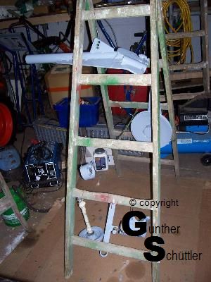 So war nach kurzer Zeit das Parallelogram fertig und nie im Leben hat mich einfache Mechanik so fasziniert. Den langen Hebel auf der rechten Seite anziehen, die Kette windet sich um eine Umlenkrolle und versetzt eine Zweite in eine Drehbewegung, der auf der Achse befestifte Hebel hebt das Parallelogram an......