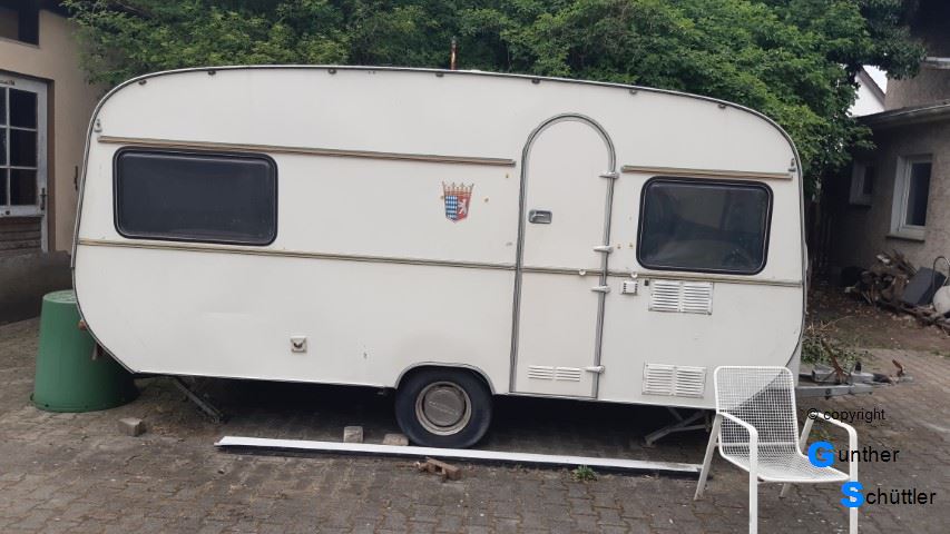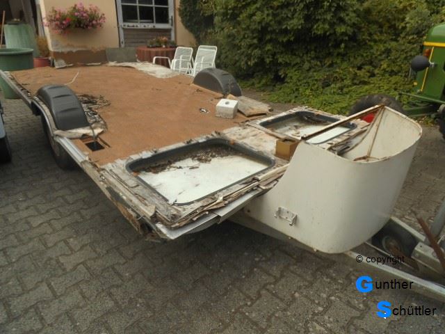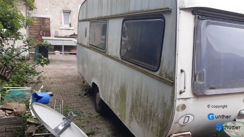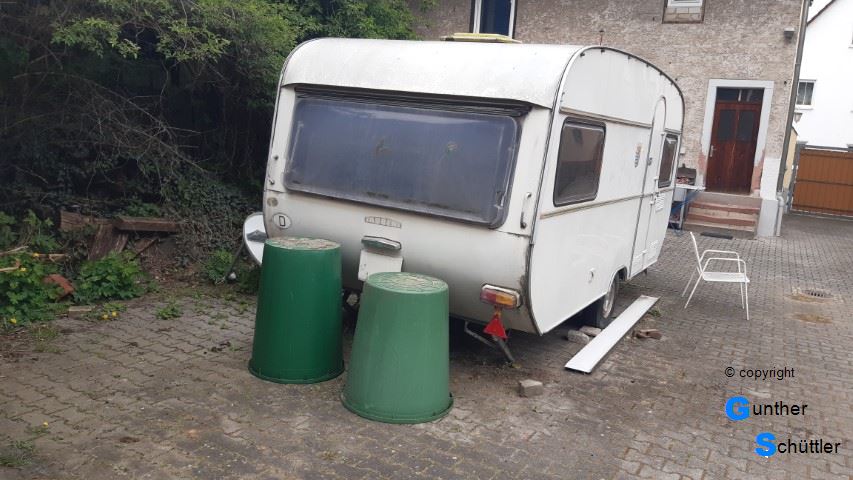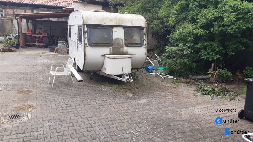 Marco hat einen alten Wohnwagen aufgetrieben, leider war er als Wohnwagen nicht zu gebrauchen. Außerdem fehlte uns der Platz um damit was sinnvolles anzufangen. So versuchte er ihn dann anderweitig loszuwerden. Mit einem früheren Vereinskollegen