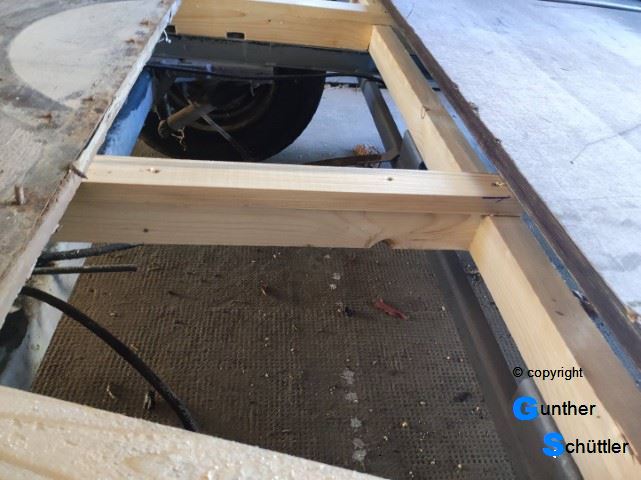 Somit haben wir ihn mit ca 80mm Holzrahmen verstärkt. Damit erreichten wir eine große Stabilität. An allen vier Ecken sind