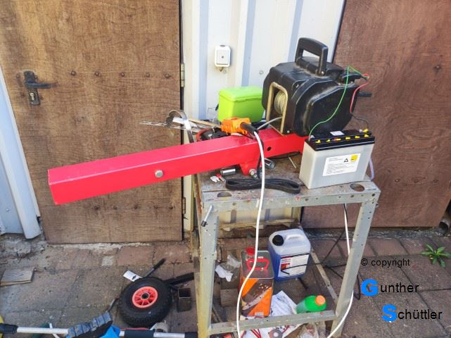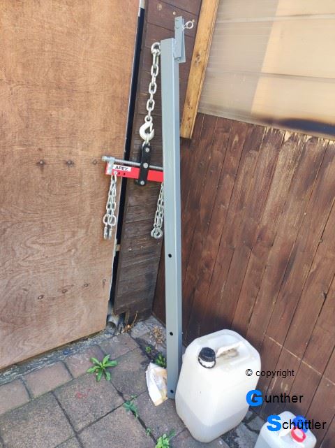 Im Kelterhaus im Guntersblumer Kellerweg hatte ich einen Pickup Kran auf der Kellerdecke installiert. Damit konnte ich