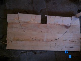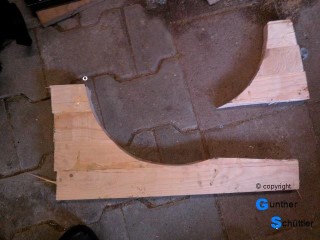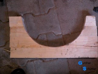 Also habe ich eine Holzschablone gebaut und mit Nachbars Hilfe einzelne Grillabschnitte gegen das Holz ausgebeult. Am Ende ging dann auch noch die Schablone zu Bruch aber es war ja geschafft.
