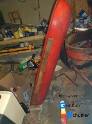 Die Haube war unbeschädigt, lediglich ein völlig unpassender Aufkleber "Ferguson System" war auf beiden Seiten aufgeklebt. Der Versuch diesen abzuziehen scheiterte kläglich.