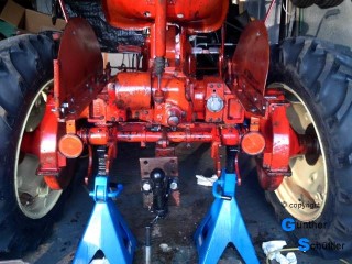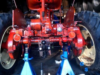 Ja hinten gab es ein Zugmaul, jedoch nicht wie wir es kennen. Es war aus Stahlplatten zusammengeschweißt und ein dünner Bolzen zum anhängen. Das war weder vertrauenserweckend noch TÜV fähig. Nach Rücksprache mit den TÜV Prüfern sollte ich unbedingt auf die "E" Kennzeichnung achten. Die Aufhängung des gesamten Zugstranges ist auch nicht als gewöhnlich zu betrachten, er beginnt in der Hälfte des Schleppers und ist mit 2 Bolzen nach oben aufgehängt. Der sollte auch so erhalten werden.