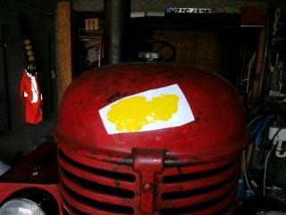 Nun bei dem Massey Harris ist es etwas komplizierter, die Schrift ist größer und der Erfolgsdruck höher. Wenn diese Art der Beschriftung schief geht bleibt letztendlich nur eine Neulackierung des kompletten Fahrzeuges.