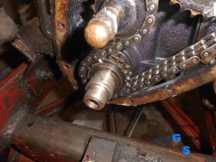 beide Kettenräder markiert. Bei dem Motor handelt es sich um ein Peugeot 203 Motor oder doch 403 Motor.....