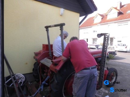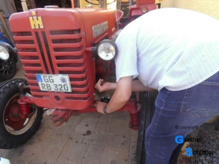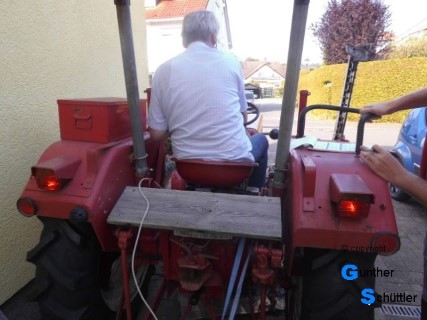 An diesem Schlepper hat sich jetzt einiges getan, die Elektrik wurde erneuert, Vorderachse, Lenkung usw wurden dabei angefasst. Nach solch einer umfangreichen Aktion, die auch nicht an einem Stück erledigt wurde treten natürlich Unsicherheiten auf. Da die erste Fahrt zum TÜV geht stellt sich auch die Frage ob ALLES funktioniert.