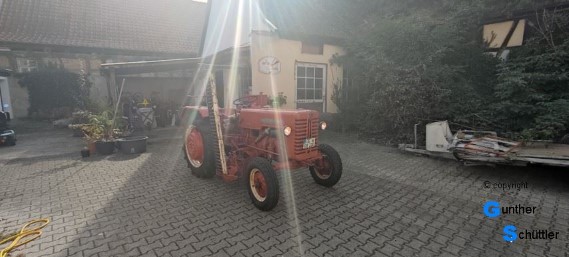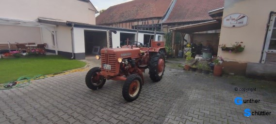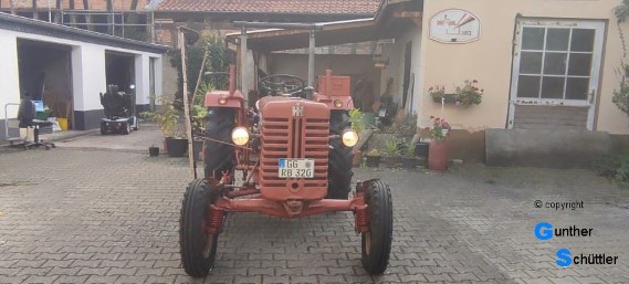 Aber alte Schlepper haben ja nicht nur Patina sondern meist auch noch mehrere KFZ-Briefe (bei denen eine Ecke fehlt). Dieser Schlepper hat sie schon alle gehabt, den Pappbrief, den Weißen und auch noch den jetzt aktuellen. Leider fehlt der Pappbrief aber der Weiße wusste von Reifen an dieser Maschine zu berichten, Schwarz, Rund und auch noch in bestimmten Größen die es nicht mehr gibt. Danach konnte der Prüfer ermitteln, es sind die richtigen montiert, Hinten eben die Ersatzgröße aber das passt.