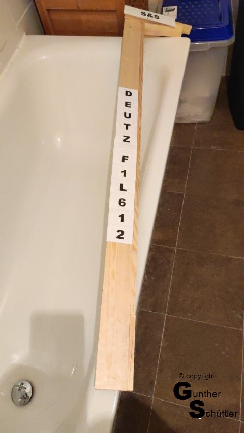 Danach die Schrift ausgedruckt und mittels Brenngerät in das Holz eingebrannt. Dabei sind der Fantasie auch keine Grenzen gesteckt. Wir entschieden uns für den Hersteller des Mähwerks S&S und den Schlepper Deutz F1L612. Die Einzelheiten sehen Sie in den Bildern. Da blieb im oberen Teil noch eine freie Fläche für den Eigentümer des Schleppers. Die Vordere Kannte zeigt sich stolz in der Schlepperfarbe. Mittels zweier Flacheisen und Federn wird der Schutz am Mähwerk befestigt. In der Szene gibt es ja bekanntlich viele Meinungen, Originalzustand, besser als Original, erhalten und Geschichte bewahren. Es gibt auch Leute, die sich richtig austoben und Schlepper in den Discolook versetzen. Ja auch richtige Ratten haben ihre Daseinsberechtigung. Lediglich sollte man da auch auf den Erhalt achten, schließlich handelt es sich bei allen um technische Kulturgüter. Die breite Vielfalt bietet somit für JEDEN auch die Möglichkeit der Selbstverwirklichung.