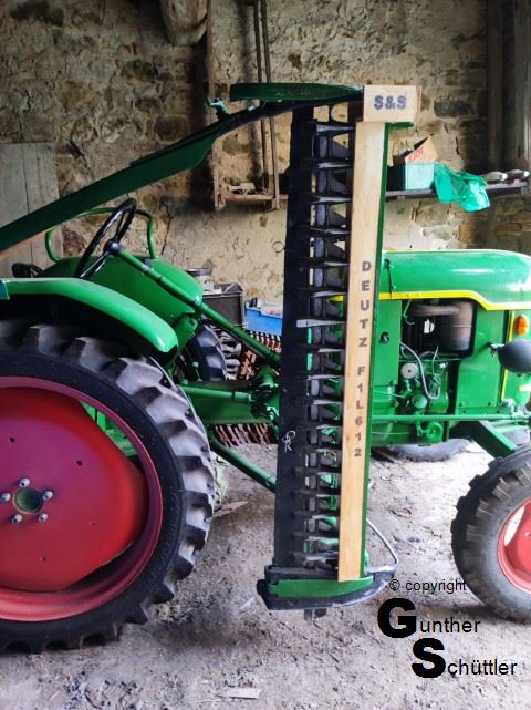 Wir haben auch (nicht Vorbildgetreue) Nachbauten im Bestand, ja sie zeigen aber die Entwicklung und geben einen Einblick in diese Zeit. Auch hat sich bei einem Teileträger die Frage gestellt,verschrotten oder ein Traum erfüllen. Nach einigen Jahren sehe ich, die Frage haben wir richtig beantwortet. Dabei waren auch einige Elemente die für eine größere künstlerische Freiheit standen. Bei dem Pony 812 NFE, den es ja so nie gab, war das künstlerische Toben auf den Mähwerkschutz und das Schwadbrett konzentriert. Da dies jedoch schon einiges hergibt haben wir uns auch für eine ähnliche Lösung für den Deutz F1L612 entschieden.