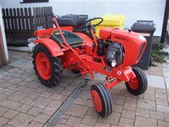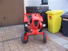 ......bei Regenwetter ist der Kleine dann mit dem Anhänger zur Halle gereist, gezogen vom Holder B12.......