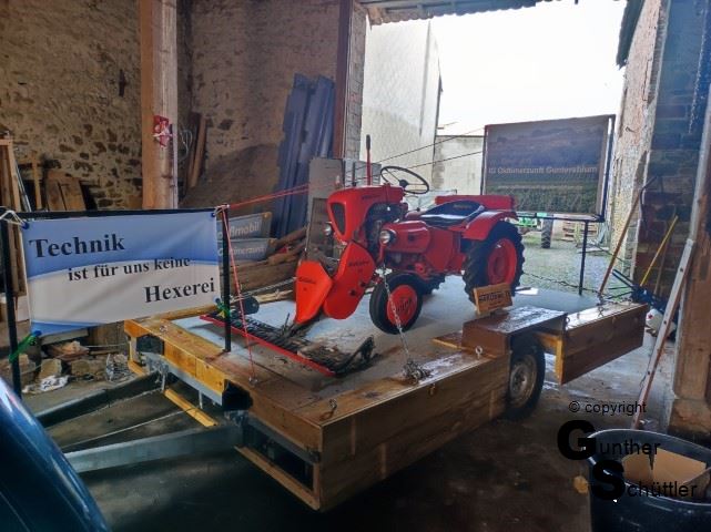Angeblich wurden nur 250 Stück gebaut und damit ist es auch schon ein sehr seltenes Gerät. Beim Aufladen zeigt sich dann wie der kleine Schlepper auf der großen Plattform seine Wirkung entfaltet. Da für und die Technik keine Hexerei ist wird auf dem Schlepper eine Hexe Platz nehmen, unsere Hexe "Berta ohne Namen". Auch werden es noch einige Accessoires des Hexenkults den Wagen zieren. |