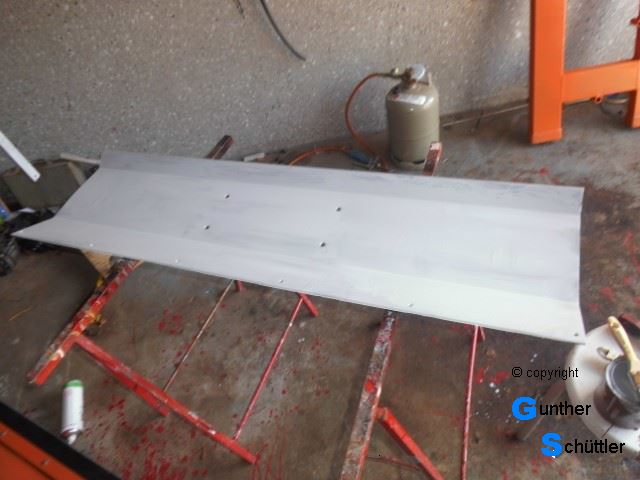Das Schneeschild ist recht aufwendig gebaut, es kann mittels einer Schraube in der Schrägstellung variiert werden.
