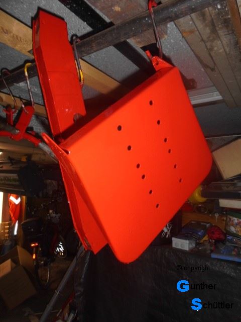 Das Arbeiten mit der Spritzpistole kam wegen den Kollateralschäden nicht in Frage, ja es soll ja auch kein Hochglanz Fahrzeug werden. So habe ich die unsichtbaren Teile mit dem Pinsel behandelt und die sichtbaren Teile mit einer Schaumstoffrolle, das lässt dann auch noch die Lackierung der damaligen Zeit erahnen. Ja die Chassisteile sollten rot und die Funktionsteile schwarz werden, dazu verwendete ich 2in1 Farbe, das hat schon einiges erleichtert. Bei der derzeitigen Witterung braucht die Farbe auch ihre Zeit zum trocknen. Danach werden diese Teile erst einmal eingelagert, ja es gibt noch mehr zu tun. |