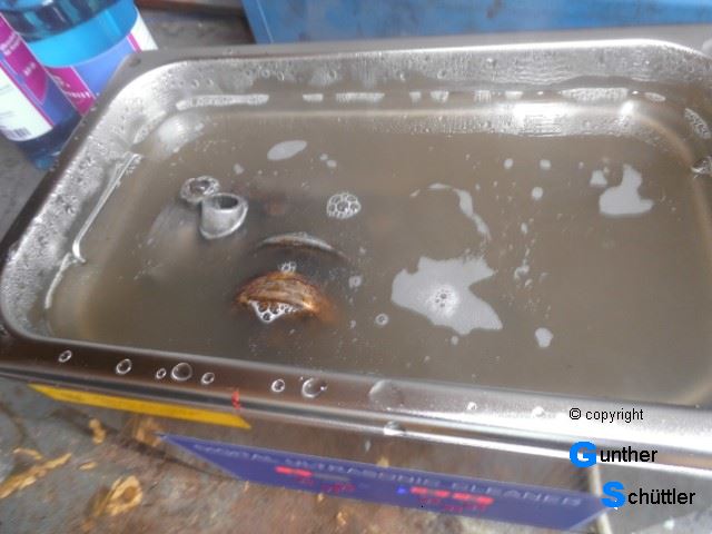 Im letzten Jahr gab es dann aber Probleme, die sich letztendlich erst jetzt auflösten. Startprobleme, hoher Spritverbrauch und auch mal Motor Blockade beim Starten, ja es schien ein nahes Ende zu sein. Beim tieferen Einstieg in die Materie sollte dann doch die Ursache gefunden werden und dann in einer Kette unglücklicher Umstände enden. Im Tank setzte sich Wasser ab, daran kann sich die Maschine nun mal garnicht erfreuen ...... ..... auch ist der Vergaser noch solide aus Metall gefertigt, auch da hat es Spuren hinterlassen. In all den Betriebsstunden wurde auch reichlich Schmutz in den Vergaser gespült, Benzin, Wasser und Schmutz sind eine tolle Mischung ..... ..... das setzt sich fest. Eine normale Reinigung erschien nicht erfolgversprechend auszufallen. Es sollte schon eine gründliche Reinigung in einem Ultraschallreiniger sein. Ja der war auch gründlich, die Dichtungen waren auch zerlegt in der Reinigungsflüssigkeit zu finden. Nur was ist das für ein Vergaser, ja Ersatzteile gibt es ja nicht mehr nach den Maßen, Teilenummern sind gefragt. |