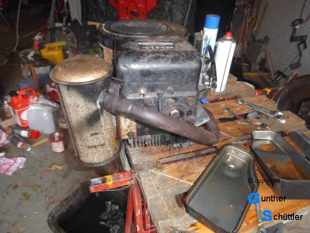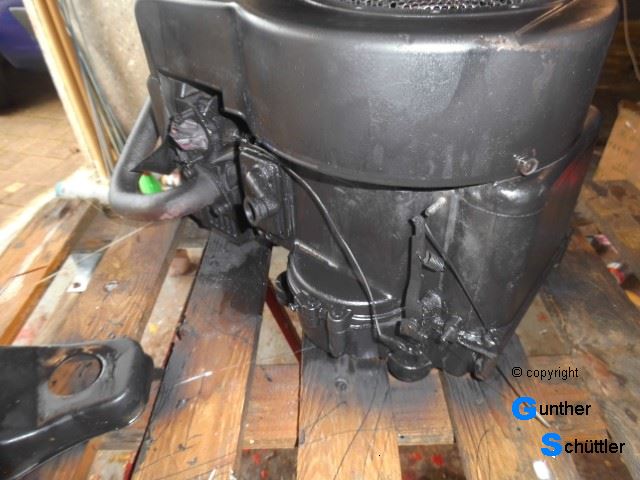 Der Vergaser passte zwar mechanisch und sah aus wie das Originalteil aber die Sache mit den inneren Werten ..... .... für den Motor war er einfach mit zu große Düsen bestückt. Nun ging die Suche nach den Dichtungen erst richtig los und führte zum Erfolg. Da der Motor bis zu der Vergasergeschichte problemlos lief, waren nur kosmetische Maßnahmen notwendig. Es gab Schrauben die einfach nicht passten und ausgetauscht werden mussten. Auch kam dabei die genaue Bezeichnung des Motors zum Vorschein, die früher weitergeholfen hätte. Also nur noch Öffnungen verschliessen, Beschriftungen abkleben und mit Thermolack lackieren. Bei diesen Maßnahmen habe ich dann auch gleich das Anlasserritzel ausgetauscht, dessen Zukunft war auch weitgehend aufgebraucht. |